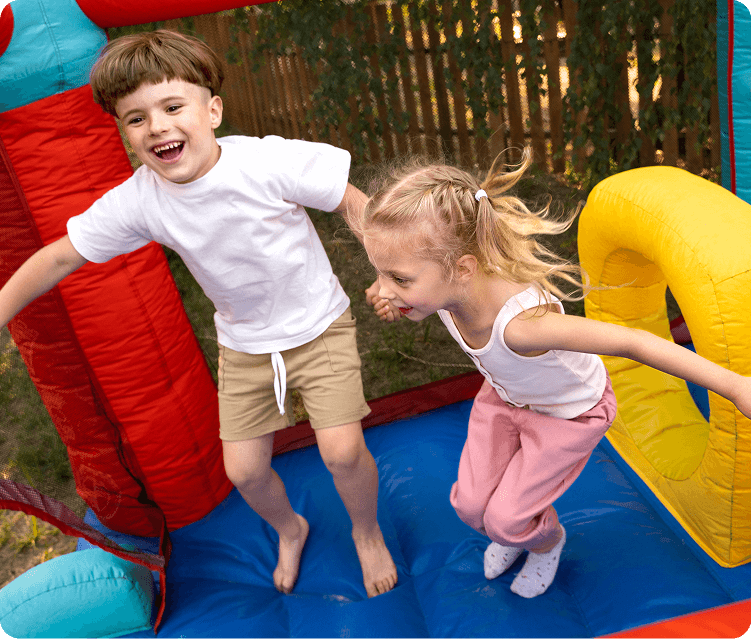 Bounce, climb, and race down twin slides! Great for competitive fun and larger gatherings.